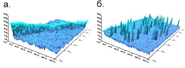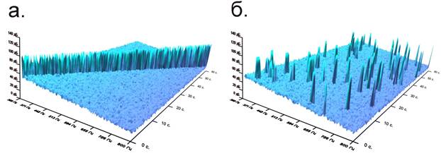 Рисунок 5. Временные сонограммы шумов в диапазоне 300-800 Гц.