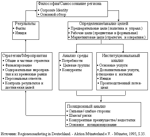 На основе этих исходных пунктов, систематических исследований восприятия региона со стороны и изнутри он профилируется и позиционируется (третий шаг).