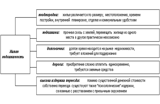 Жилая недвижимость, как товар обладает следующими свойствами, отличающими его от других товаров (рис. 1.2).