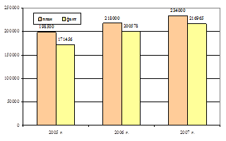 Снижение товарооборота по сравнению с планом проходило фактически по всем подразделениям. Наибольшее отклонение произошло по Донскому РТП 3114 тыс.руб. или 91 % от плана, по Центральному РТП 2231 тыс.руб. и Хмелинецкому РТП в сумме 2107 тыс.руб.. В связи с этим достаточно нелогичным представляется значительное завышение плана по данным подразделениям. По общепиту в 2007 году имело место также выполнение плана на 94,05 %, отклонение составило 1131 тыс.руб. Исходя из этого руководству организации следует уделять внимание анализу факторов снижающих товарооборот и соответственно более точно осуществлять планирование, так как завышение плана приводит к образованию излишних остатков на складах и повышает риск получения убытков.