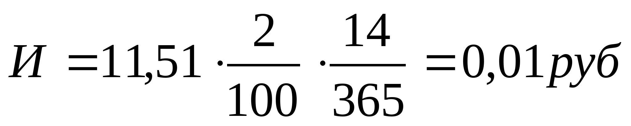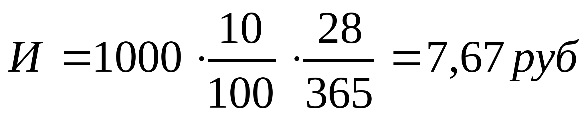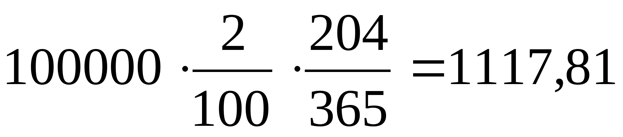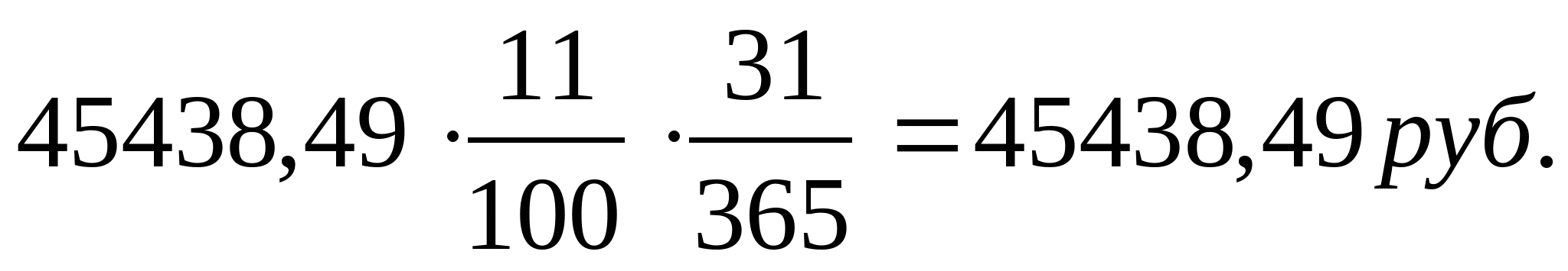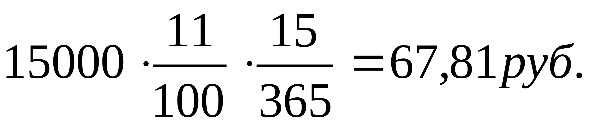 где 1000 - сумма первоначального взноса, 11 - годовая процентная ставка, 28 - количество дней с 5 января по 4 февраля (включительно), 365 - количество дней в году. На сумму дополнительного взноса:  где 500 - сумма первоначального взноса, 11 - годовая процентная ставка, 22 - количество дней с 11 февраля по 4 марта (включительно), 365 - количество дней в году. Общая сумма процентов, подлежащих выплате, составит 11,76 руб. (8,44+2,32). Сумма процентов, подлежащих причислению к остатку вклада по истечении срока 5 апреля 2001 г., будет равна: на сумму первоначального взноса: