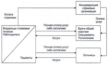 Добровольное медицинское страхование осуществляют частные страховые организации, действующие на коммерческой основе. Для частной системы финансирования здравоохранения характерна сильная конкуренция между страховщиками. Они предлагают различные виды страховых программ, имеющих разную стоимость и разные условия оказания медицинской помощи. Виды и объемы медицинских услуг, которые могут получить застрахованные, зависят от того, сколько они или их работодатели заплатили за частную страховку. При этом страховщики обычно дифференцируют тарифы страховых взносов в зависимости от возраста страхующихся, а иногда и в зависимости от перенесенных ими ранее заболеваний. Таким путем осуществляется учет риска заболеваемости в цене страховки. Страховые программы могут также различаться и по возможностям выбора врачей и медицинских организаций, которые они предоставляют застрахованным. Более дорогие страховки предусматривают право застрахованного лица обращаться к любому врачу и быть госпитализированным в больницу по его собственному выбору. Другие страховки, имеющие меньшую цену, ограничивают такие возможности. Застрахованному лицу предоставляется право выбора врачей и медицинских организаций лишь из некоторого перечня, либо застрахованный прикрепляется к определенной поликлинике и больнице.