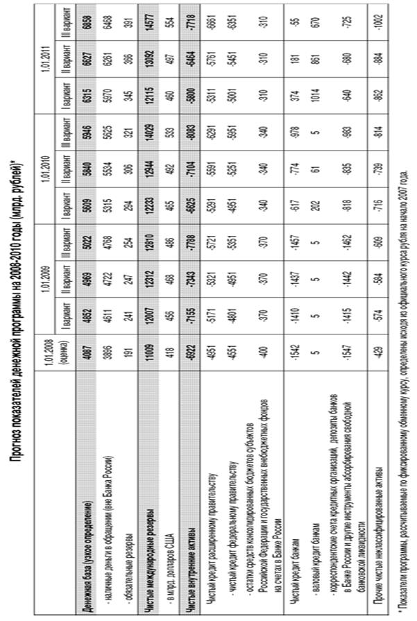 Денежная программа на 2008-2010 годы представлена в трех вариантах, соответствующих сценариям прогноза социально-экономического развития Российской Федерации на 2008-2010 годы.
