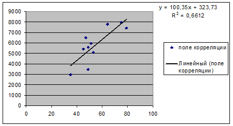 У=100,35х+323,73. коэффициент детерминации R2