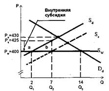 — внутреннее производство зерна). В условиях свободной торговли внутренняя цена на зерно не отличается от мировой цены и равна Рw