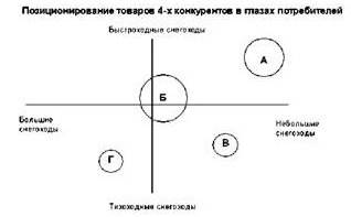 Рис. 4,12 Позиционирование товара на рынке фирм, выпускающих снегоходы по наиболее важным для потребителя характеристикам