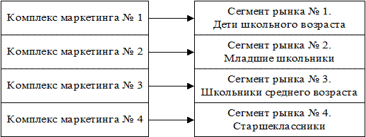 применяется тогда, когда фирма решает выступить одновременно на нескольких сегментах, причём разрабатывает отдельный комплекс маркетинга для каждого сегмента (рис. 1).