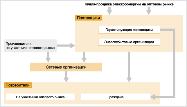 На розничных рынках будет действовать большое количество потребителей, обслуживаемых энергосбытовыми компаниями или гарантирующими поставщиками, конкурирующими между собой.