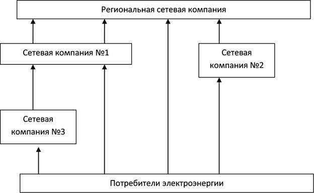 Пояснение: платежи потребителей (ЭСК, ГП) за оказанные им услуги по передаче электроэнергии поступают только в одну вышестоящую сетевую организацию (РСК). После чего данная системообразующая сетевая организация расплачивается с нижестоящими сетевыми организациями, к сетям которых присоединены энергопринимающие устройства потребителей.
