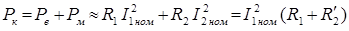 У вираз для входять , тобто номінальні значення струмів у первинній та вторинній обмотках трансформатора, оскільки дослід короткого замикання проводиться при номінальному значенні струму. Тому, враховуючи що , потужність , тобто дорівнює електричним втратам потужності в обмотках трансформатора при номінальному навантаженні.