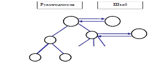 Линейно-штабная ОСУ, изображенная на рисунке (1.1),включает в себя специально созданные при линейных руководителях подразделения, которые не обладают правом принятия решений и руководства каким-либо нижестоящим подразделением.
