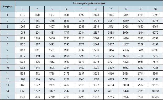 Категория работающего - это совокупный уровень его профессиональных знаний. Шкала тарифных ставок предусматривает 10 категорий.