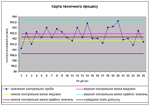 За допомогою статистичних методів ми обрахували ймовірність появи бракованих деталей у процесі виробництва та здійснили статистичний контроль якості технологічних процесів.