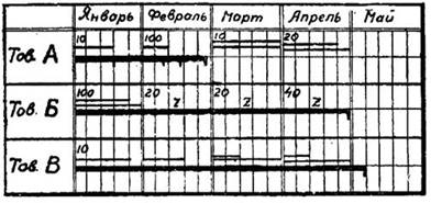 34й- Графики Гантта являлись удобным методом организации оперативной информации о ходе производства на всех участках работы. Как видно на рис., графики Гантта позволяли контролировать не только выполнение заданной работы, но и выполнение ее в определенный, заранее заданный отрезок времени. Недостаточно сказать, сколько сделано, важнее иметь сведения о том, какая часть заданного плана выполнена в заданный отрезок времени.