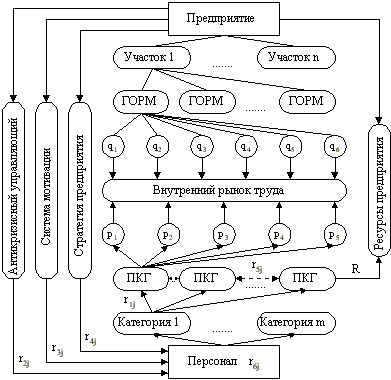 Модель менеджмента персонала предприятия (рис.1) предназначена для выявления соответствия характеристик профессионально-квалификационных групп (pj