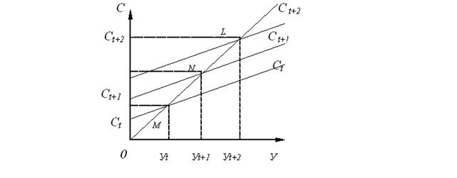 1) Він виходив з так званої гіпотези абсолютного доходу, у відповідність з якою споживання домашніх господарств залежить від абсолютної величини їх поточного доходу.