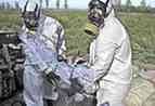 Все работы по обезвреживанию стеклянной и металлической тары из-под ядохимикатов должны проводиться в спецодежде, противогазе или респираторе.