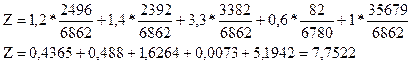 где - оборотные активы / сумму активов; - чистая прибыль / сумма активов; - прибыль до уплаты налогов / сумма активов; - собственный капитал / заемный капитал; - выручка от реализации / сумма активов.