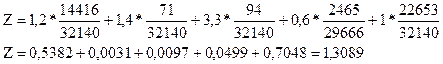 где - количество коэффициентов; - нормативное значение i-го коэффициента; - фактическое значение итого коэффициента.