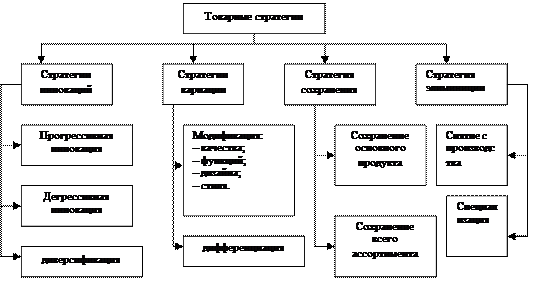 Третьим типом товарной стратегии является стратегия сохранения: основного продукта и сохранение всего ассортимента продукции.