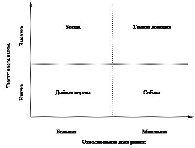 Модель «доля рынка => рост рынка». Этот подход был разработан американской консультационной фирмой «Бостон консалтинг гроуп» и основывается на концепции жизненного цикла продукта.