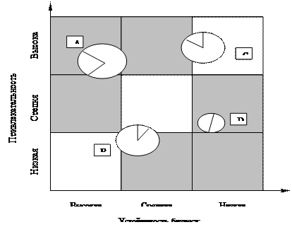 Все поле деятельности предприятия представляется как совокупность «стратегических бизнес единиц» (СБЕ). СБЕ – это независимые друг от друга сферы деятельности предприятия, которые характеризуются определенным продуктом (или группой продуктов), кругом клиентов и особыми рыночными задачами. Каждая СБЕ включает продукты (группу продуктов), объединяемые по признакам общности: характеру удовлетворяемых потребностей, технологии, типов потребителей, географических районов сбыта и др. Предприятие может работать в одной или нескольких СБЕ. Различные СБЕ имеют разные цели, рыночные возможности и риски.