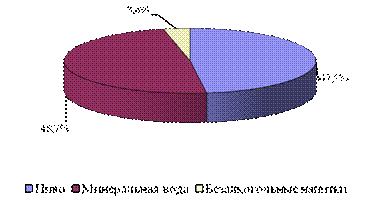 По данным таблицы 5 и рисунков 8 и 9 видно, что в 2007 году по сравнению с 2006 годом произошло снижение доли реализации пива на 3 %. В то же время увеличилась доля реализации минеральной воды АО «Роса» за этот же период на 2,4 % и возросла доля реализации безалкогольных напитков в общем объеме реализованной продукции АО «Роса» на 0,6 %.