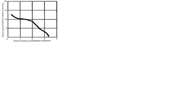 Она кажется вам замечательной, хотя принесенное ею удовлетворение все же не идет ни в какое сравнение с тем, что принесла вам первая банка. Оцените его в 7 единиц. Несколько позже вы добираетесь и до третьей по счету банки. Вы делаете несколько глотков, но вода кажется вам чересчур сладкой. Вы оставляете банку не выпитой до конца. Стрелка вашего «измерителя полезности» упала до нуля; оставшиеся не выпитыми глотки не принесут вам вообще никакого удовлетворения.