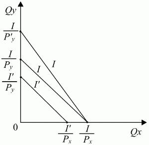 Решение потребителя приобрести товар определяется не только ценой, но и доходом. Изменение дохода ведет к параллельному смещению линии бюджетного ограничения. В результате этого устанавливается новое равновесие потребителя.