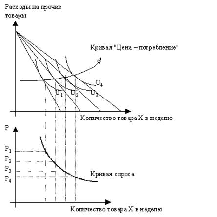 Линия «цена – потребление» может быть использована для построения кривой индивидуального спроса.