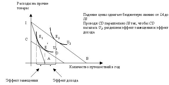 При снижении цены товара возникает два эффекта: эффект дохода и эффект замещения.