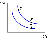 для него равнозначны, так как лежат на одной и той же кривой безразличия. Следовательно, чем дальше кривая безразличия расположена от начала координат, тем большему уровню благосостояния она соответствует.