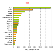 Рисунок. 20 стран с наибольшим совокупным ВВП в 1950 и 2007