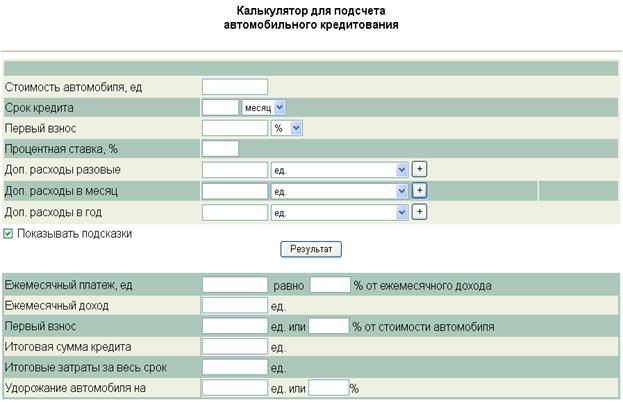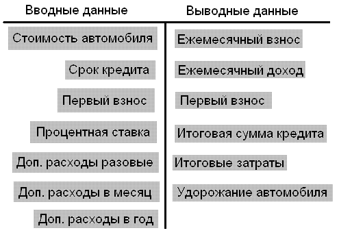 | 3.1 Требования, выставляемые к программе для расчета затрат автомобильного кредитования…………………………………………. |