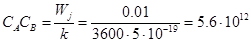 (практически приемлемая скорость), произведение концентраций реагентов в реакции типа (6) должно равняться