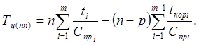 Подставив данные из приведенного выше примера (n = 3, m = 4, р = 1) в полученную формулу, определим продолжительность технологического процесса: