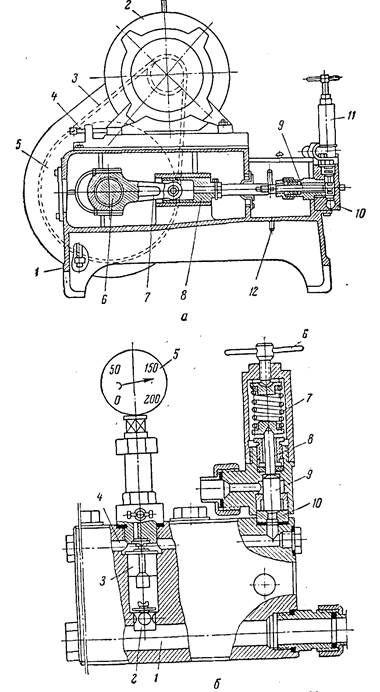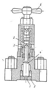 Давление регулируют винтом 11, руководствуясь показаниями манометра 10. При завинчивании винта давление пружины па клапан увеличивается, следовательно, высота клапанной щели уменьшается. Это приводит к увеличению гидравлических сопротивлений при движении жидкости через клапан, т.е. к увеличению давления, необходимого для проталкивания данного количества жидкости.