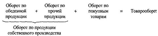 Розничный товарооборот – это продажа продукции собственного производства и покупных товаров непосредственно потребителям через обеденные залы, буфеты. Выпуск всей продукции кухней в стоимостном выражении является оборотом продукции собственного производства. В свою очередь, продукцию собственного производства подразделяют на обеденную и прочую.