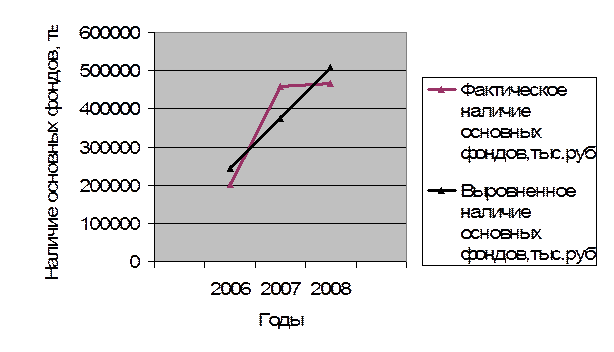 Показатели рядов динамики показали, что наличие основных фондов каждый год существенно различается. Оно колеблется от 201497 тыс. руб. до 467110 тыс.руб. в разные годы, но в целом наличие основных фондов постепенно возрастает.
