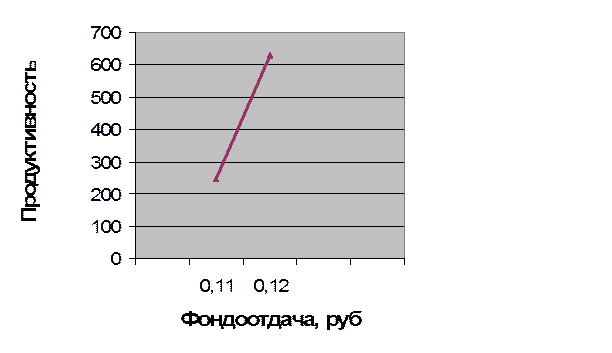 Рис.2. Зависимость продуктивности скота от фондоотдачи.