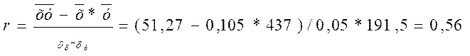 Определим тесноту связи между изучаемыми признаками, рассчитав коэффициент корреляции по формуле: