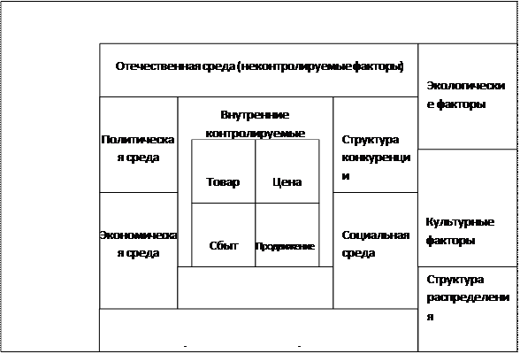 Говоря об отечественных неконтролируемых факторах, отметим, что в отдельных случаях фирмы могут повлиять на некоторые из них через промышленные ассоциации, фонды поддержки бизнеса и т.п. Данные факты скорее исключение, чем правило. В основном экономический климат, конкурентные и политические силы принимаются таковыми, какие они есть.