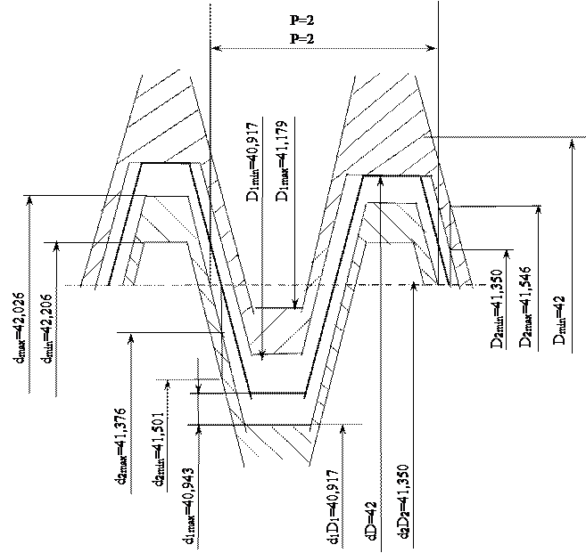 Из таблицы ГОСТ 9150 – 59 выписываем номинальные значения диаметров: