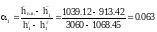 | 3,4 | | C1t | м/с |  | 266,1 | | C1 | м/с | jґ C1t=0,96ґ266,1 | 255,4 | | a1t | м/с |  | 612,9 | | M1t | - | C1t/ a1t=255,4/612,9 | 0,4 | | F1 | м2 |  | 0,019 | | l1 | м | F1/(pdґsina)=0,0189/(3,14ґ0,6154ґsin14) | 0,045 | | DHc | кДж/кг | (1-j2)ґ =(1-0,962)ґ35,4 | 2,78 | | w1 | м/с |  | 127,8 | | b1 | град |  | 29 | | w2t | м/с |  | 150 | | F2 | м2 |  | 0,035 | | l2 | м | l1+(D1+D2)=0,045+0,003 | 0,048 | | b2 | град |  | 24 | | w2 | м/с | w2tґy=150ґ0,94 | 141 | | C2 | м/с |  | 52,1 | | a2 | град |  | 95 | | DHр | кДж/кг |  | 1,3 | | DHв.с. | кДж/кг | C22/2 =52,12/2 | 1,4 | | E0 | кДж/кг | _ Н0 -cв.с. ґDНв.с.= 38,45-1ґ1,4 | 37,09 | | hол | % |  | 89 | | hр,с,ол | % |  | 89,6 |