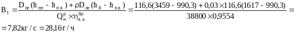 Вр=В1(1-0,01ґq4)=7,82ґ(1-0,01ґ0,02)=7,81 кг/с=28,11 т/ч