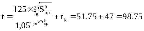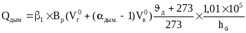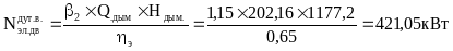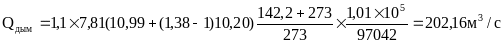 3. Определение температуры точки росы:  Spпр=Sp /Qнр=2,8/38,8=0,07 кг%/МДж Арпр=Ар/Qрн=0,1/38,8=0,002 кг%/МДж  4. Определение мощности дымососов и вентиляторов. 4.1.Определение мощности дутьевого вентилятора. Qдут.в.=b1ґ Врґ Vво(aт+ Daт+ Daвп- Daпл)ґ((tх.в.+273)/273)ґ(1,01ґ105/hб) hб=728 мм.рт.ст.ґ133,334=97042 Па b1=1,1- коэффициент запаса Qдут.в.=1,1ґ 7,81ґ 10,2(1,13+ 0,1+ 0,06- 0)ґ((70.+273)/273)ґ(1,01ґ105/97042)=147,8 м3/с  4.2. Определение мощности дымососа:  Jд=0,9ґtух.г.=0,9ґ158=142,20С aд=aух+Daд=1,28+0,1=1,38   5. Производительность ПН, мощность эл/двигателей ПН Qп.н.=(b1ґDmax)/r=(1.2ґ116.6)/834,6=0,1676 м3/с r=1/J/=1/0.0012=834,6 кг/м3 при tп.в.=2300С