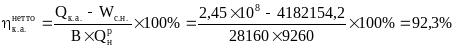 Нп.н.= b1(РкґНс)=1,1 (16,8ґ106+490,5)=18,5 МПа 6. Определение hнетк.а.   =4182154,2 ккал/ч  7. Оценка погрешности расхода тепла, когда термопара дает неточное показание, завышает температуру острого пара на 50С t/п.п.=5500С+Dtп.п.=5550С h/п.п.=3477,9 кДж/кг  B2=Qк.а./(Qрнґhк.а.)=292246,4/ (38800ґ0,923)=8,16 кг/с=29,376 т/ч Bp= B2 (1-0.01ґq4)= 8,16ґ(1-0.01ґ0.02)=8,158 кг/c = 29,368 т/ч DВ=В2-В1=29,376-28,16=1,216 т/ч DВр=Вр2-Вр1=29,368-28,11= 1,258т/ч