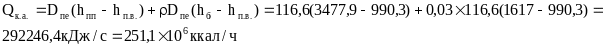 1.5. Потери тепла с физическим теплом шлака: q6=0 1.6. Сумма потерь: hк.а.бр.=  2. Определение расхода топлива на котельный агрегат tп.п.= 5500С tп.в.= 2300С tн=342,60С hп.п.=3459 кДж/кг hп.в.=990,3 кДж/кг hн=1617 кДж/кг