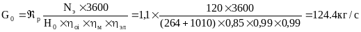 N1э=G0ґ(h0-h1)ґhмґhэг=124,4ґ(3245-3073)ґ0,99ґ0,99=20,97 МВт N2э=(G0-G1)ґ(h1-h2)ґhмґhэг=(124,4-13,3)ґ(3073-2894)ґ0,99ґ0,99=19,5 МВт N3э=(G0-G1-G2)ґ(h2-h3)ґhмґhэг=(124,4-13,3-13,1)ґ(2894-2726)ґ0,99ґ0,99=16,1 МВт N4э=(G0-G1-G2-G3-Gд)ґ(hд-h4)ґhмґhэг=(124,4-13,3-13,1-12,56-2,07)ґ(2480-2410)ґ0,99ґ0,99=23,13 МВт N5э=(G0-G1-G2-G3-Gд-G4)ґ(h4-h5)ґhмґhэг=(124,4-13,3-13,1-12,56-2,07-3,42)ґ(2410-2330)ґ0,99ґ0,99=6,4 МВт N6э=(G0-G1-G2-G3-Gд-G4-G5)ґ(h5-h6)ґhмґhэг=(124,4-13,3-13,1-12,56-2,07-3,42-4,03)ґ(2330-2260)ґ0,99ґ0,99=6,9 МВт N7э=(G0-G1-G2-G3-Gд-G4-G5-G6)ґ(h6-hк)ґhмґhэг=(124,4-13,3-13,1-12,56-2,07-3,42-4,03-4,0)ґ(2260-2150)ґ0,99ґ0,99=5,8 МВт Nкэ=(G0-G1-G2-G3-Gд-G4-G5-G6-G7)ґ(hк-h/к)ґhмґhэг=(124,4-13,3-13,1-12,56-2,07-3,42-4,03-4,0-4,06)ґ(2150-142)ґ0,99ґ0,99=17,4 МВт SNэ=116,2 МВт