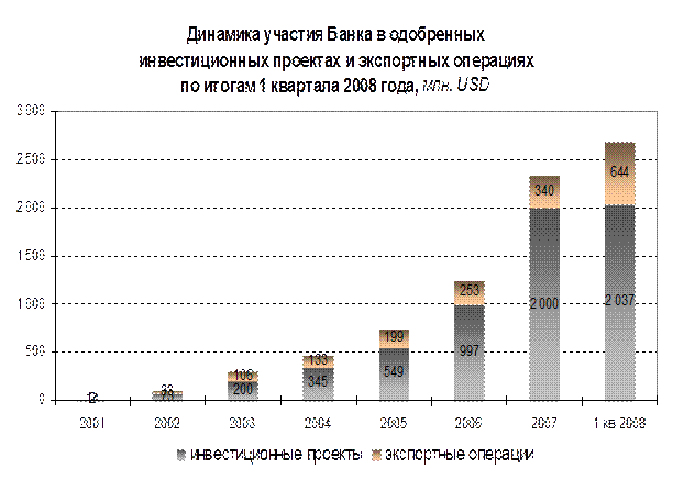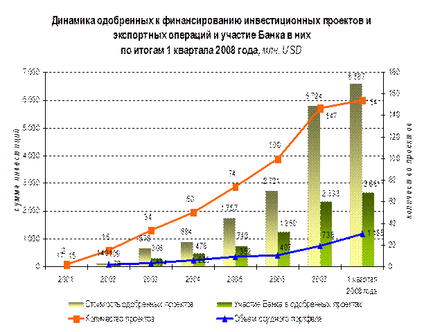 В первом квартале 2008 года в целях пополнения базы фондирования инвестиционных проектов Банком привлечены следующие займы: